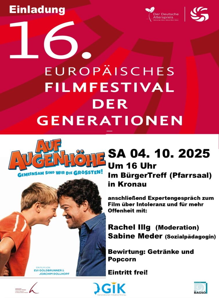 Filmvorführung „Auf Augenhöhe“ im Rahmen des Europäischen Filmfestivals der Generationen